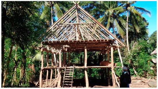 Through their physical structure, construction, and material, traditional or vernacular houses convey different values [13] (Rapoport, 1969) (see Figure 2). As such, previous studies of Ammatoan houses have focused primarily on the integration of Ammatoan cultural values in their architecture. This study seeks to enrich these studies by examining the specific structural strength of these buildings. In the face of modernization and extreme climate change, the continued existence of such traditional houses has been threatened [14]. Disaster may strike at any time, and as such we must explore the structural strength of their structures to predict these buildings’ ability to endure such events [15,16]. The key contribution is the recognition of the specific structural strength of these vernacular Ammatoa houses within modernization and extreme climate change as a basis for consideration in building similar house buildings in South Sulawesi.