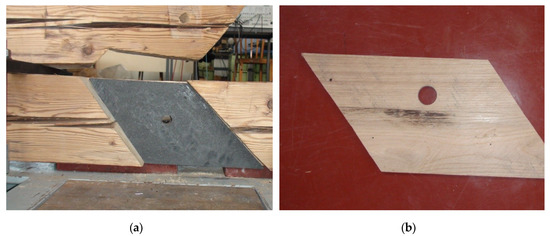 (a) Joint retrofitting with brake friction plate and replacement of the oak pin by a pre-stressed steel screw bolt; (b) an oak plate for joint retrofitting with friction plates.