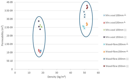 - Air permeability of wood-fibre insulation was found to be somewhat higher to that of mineral wool despite a higher density.