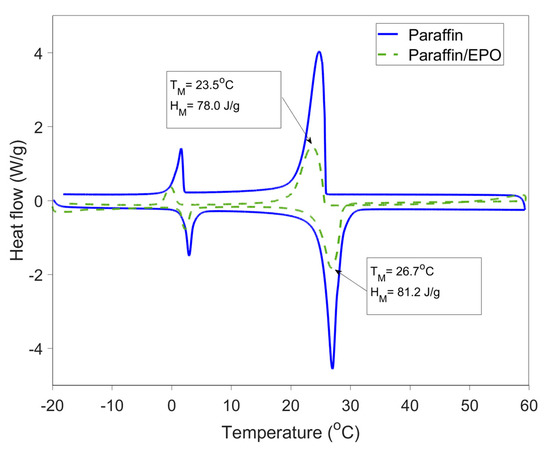 Thermal properties of paraffin and form-stable phase change material (PCM) [25]. EPO: expanded perlite.