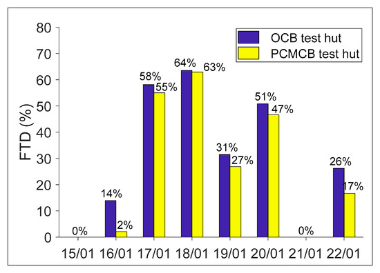 Comparison of FTDover in OCB and PCMCB test huts.
