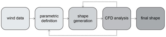 The methodology presented in this research is utilized to find the best performing building envelope in the specific wind conditions. At the same time, however, this step-by-step architectural design method proposing a design loop for creating building envelopes is the intention of this study. Figure 1 is a scheme of the developed methodology incorporating the detailed analysis of the wind situation through parametrically creating various shape alternatives, and subsequent CFD testing to finally selecting the best-performing geometry, decided by the designer according to the initial goals.
