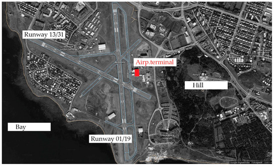 The airport has three short runways; two of them are active, but the shortest (869 meters long) runway, was closed in 2016 (Figure 4). The other two runways are 01/19, which is 1567 m long, and 13/31, which is 1230 m long. Surrounded by the bay from the south-west side and a 60-meter high mountain from the east side, the airport has, naturally, a flattened morphology. Family houses are located north of the airport [23]. The airport in Reykjavik had 376 347 passengers last year, which was 5.5% less than the year before that [26].