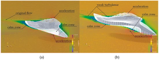 CFD results of shape variation 1: top view (a) and perspective view (b).