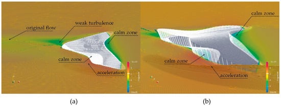 (4) The interpretations of the CFD simulation results are made by the designer according to the observation of the wind speed and flow pattern around the designed architectural shape. To mathematically support the designer’s opinion, additional probe points can be placed at the observed locations to measure the exact wind speed at the selected location.