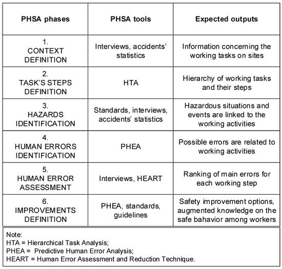 - The inclusion of human reliability tools in the safety assessment of working activities is not a novelty in the extant literature. However, the PHSA procedure can augment practical knowledge on the integrated and coordinated use of these methods in the construction sector, providing a basis for further developments by means of researchers and practitioners.