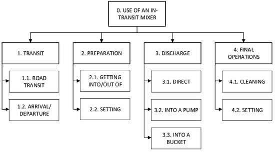 - Tasks’ steps definition: Based on the information collected in the previous phase, the working tasks are split into sub-tasks and elementary activities. In fact, although the latter may not be complex in and of themselves, the working task is complex, as it consists of interrelated elementary activities that might influence each other [51]. For this purpose, the HTA method was used, allowing the sub-division of working tasks into sub-tasks and elementary activities in a hierarchical manner.