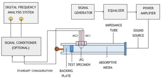 - American Standard Testing and Material E 1050-98, Standard Test Method for Impedance and Absorption of Acoustical Materials Using Tube Two Microphones and Digital Frequency Analysis System; ASTM International: West Conshohocken, PA, USA, 1998.