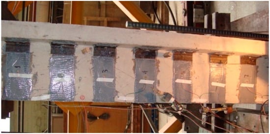 Furthermore, the calculated maximum shear capacities of each strengthened beam are presented in Table 2. In order to predict ultimate shear force, the strain measurements developed on the SFRP strips, intersected by the major shear crack, were taken under consideration. These strain values are presented in Table 2. The predicted values are very close to the experimentally measured (see Table 4). The calculated shear forces are further discussed in more detail in Section 5.