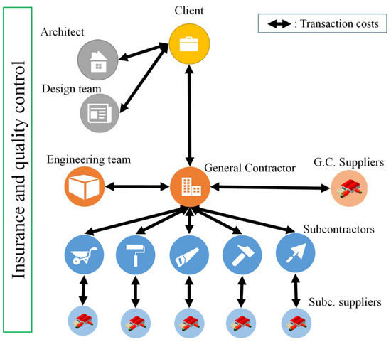 - Intermediaries inherent to the construction value chain: Cost consultants/QS, labor-only sub-contractors, client rep. (who stands between client and teams), project managers, accountants, and auditors. Another type of intermediary is when a subcontractor pays the general contractor, and after that the client pays the general contractor for the work done.