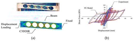 Verification of the finite element modeling methodology against laboratory test []. (a) FEA model; (b) Comparison of FEA with test.