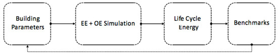 To encourage the usage of performance-based evaluation (PBE) of the existing buildings, it is essential to shift the current regulatory systems from a prescriptive to a performance-based approach. A prescriptive approach “describes the way [in which] a building asset has to be constructed instead of the ends of the building process, and it is related with type and quality of materials, method of construction, [and] workmanship.” Such an approach is strictly mandated by law, codes, standards, and regulations, and it is based on past experience and consolidated know-how. Using a PBE approach does not preclude the use of prescriptive specifications. Although the benefits of the adopting of a PBE approach are significant, it is recognized that employing a performance-based approach at any stage in the building process is more complex and more expensive than using a simpler prescriptive route. Thus, the application of this approach should not be regarded as an end in itself. When simple buildings are concerned or well-proven technologies are used, the use of prescriptive codes is more effective, more efficient, faster, or less costly, so prescriptive specifications will continue to be useful in many situations. Therefore, to better utilize the above framework, a newer generation of tools is required to have the ability to simulate not only the operational energy but also the overall LCE inclusive of the EE and OE through the integration of both carbon calculators and performance-based simulation tools (Figure 2).