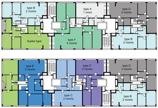 Overview of the seven unit types in Paduart’s refurbishment proposal. Image by Paduart [36], used with permission.