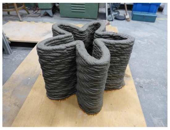 3D printing in construction is a new field of study that has attracted many researchers [3,35,36]. The current challenges of 3D printing concern the robotics systems, the software part [9], and the material part [3,37]. The principle of 3D printing in construction has many similarities with the one we already know for ordinary printing, a nozzle deposits layers of viscous concrete at each pass by climbing each time a notch [22]. One of the major scientific locks of construction 3D Printing is the material. The latter passes through the mixer, pump, robot and then is extruded through the nozzle. The printed material should be designed to withstand horizontal and vertical constraints throughout the printing process [38]. The main material currently used for 3D printing is cement. One of the main advantages of printing a cementitious material is avoiding the laborious formwork phase, which represents 35–60% of the total cost of concrete structures.