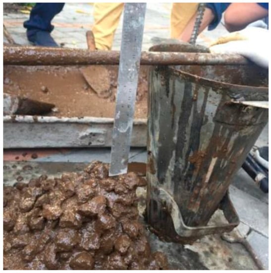The UPV test can be used to assess the uniformity and relative quality of concrete. This test was performed in accordance with ASTM C597-09 []. However, due to the non-destructive nature of this test, the result of this test must be accompanied by a destructive test for validation. Table 5 shows the results of the UPV test performed on series I and II specimens. It shows that based on the average of the UPV test results, specimens from series II had a slightly better quality than that of specimens from series I. This result contradicts with the result of compressive strength results which shows that series I had a higher compressive strength. Based on results from BS 1881 [], concrete with a UPV test result between 3000–3500 m/s could be classified as medium quality concrete.