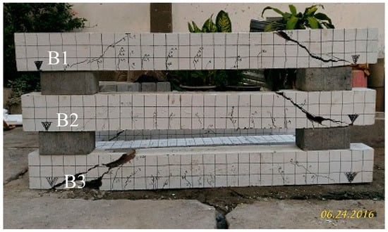 - Series I—beams cured at room temperature (B1, B2, and B3)