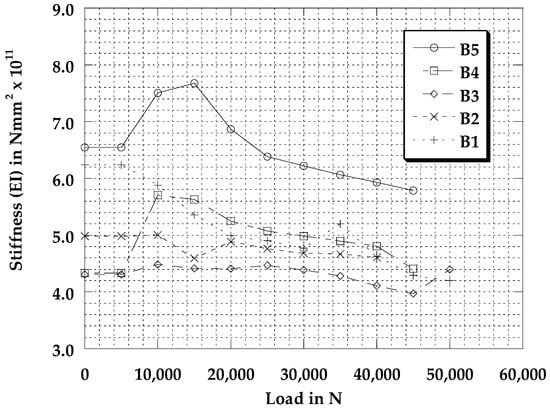 The load versus mid-span deflection curves until 70% of the ultimate load are shown in Figure 9. In general, the two series followed the same trend even though the compression strength of the first series was 40% higher than that of the compressive strength of the second series. Surprisingly, specimens from series II test which had low compressive strength showed slightly higher stiffness than that of the series I test. Figure 10 shows the stiffness degradation curve for all beams. During loading tests, all the beams followed almost similar strength degradation curves. However, the series II beams, and especially B5 had a higher stiffness than the series I beams. Note that the strength degradation curve only captured up to 70% of the failure load to avoid damage to the deflection monitoring devices.