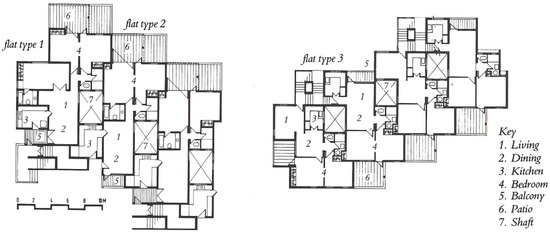 - Hans, M. Yamuna Apartments. In Mimar 14: Architecture in Development; Khan, H.U., Ed.; Concept Media: Singapore, 1984; pp. 58–63. [Google Scholar]