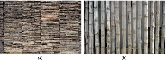 Cladding materials used in Dilli Haat Janakpuri: (a) Delhi Quartzite Stone and (b) bamboo (Photo: Author).
