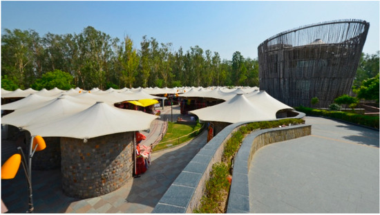 - Chaya, L. Archohm designs a 16,000 sqm green bazaar and concert hall in New Delhi. 20 September 2017. Available online: https://www.designboom.com/architecture/archohm-dilli-haat-concert-hall-bazaar-new-delhi-09-20-2017 (accessed on 1 November 2018).