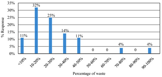 Percentage of responses regarding the amount of waste which can be found during construction.