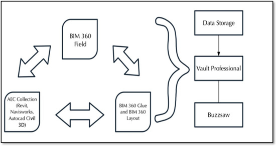 It is essential to demonstrate how the design of different disciplines is delivered with BIM, and how the BIM model is taken over to the subcontractors to lead their work on-site. The BIM department which is represented by the INA BIM Management Team in Figure 6 is at the focal point of the BIM delivery landscape as being responsible for the managing, integrating, utilizing, and the monitoring and controlling of the BIM model data by creating a collaborative virtual work environment for all major stakeholders, including the designer, subcontractors, BIM modelers, and quality assurance and quality control (QA/QC) team. BIM models are generated at different levels of details, and the BIM data is utilized by generating clash reports; 4D scheduling; performance dashboards to have an effective control mechanism on the subcontractors’ work on-site. Weekly BIM workshops, as well as BIM coordination meetings, are used as communication tools to oblige subcontractors to use BIM tools. BIM tools that are used to provide a cloud-based virtual collaborative platform for BIM integration are presented in Figure 7. The use of this BIM software enables the INA Project individuals to have a controlled work sharing, BIM coordination, design review, change visualization, quality management, and issue management, access to RFIs and submittals, and the notification of inspection documents.