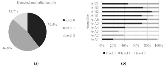In regard to urgency of repair, approximately 47% of anomalies belong to intervention level 1, 40% to level 0 (the most urgent), and 13% to level 2 (