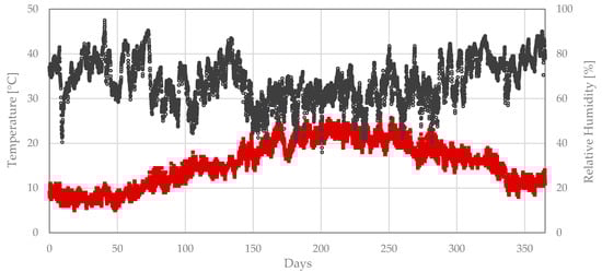 Figure 1a). The average values of the temperature and relative humidity measurements is represented in