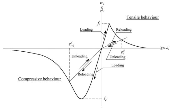 Figure 9). In this material model, the shear behavior is updated according to the damage which occurred during the analysis. The compressive strength (