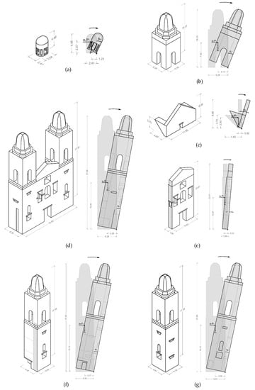17] were used to determine the elastic properties of the masonry materials: average density, elastic modulus, and Poisson’s ratio calculated from the range of values proposed for each type of masonry. Similarly, the characteristics of granite and timber elements were defined as the mean value of the material properties provided by specialized studies [