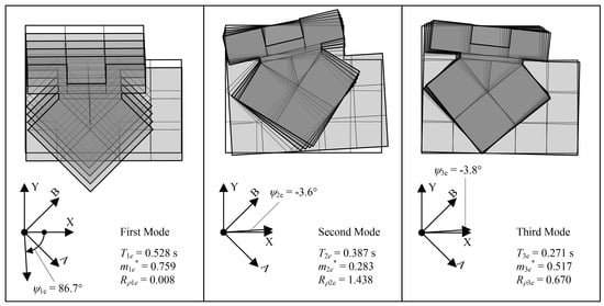 - Manoukas, G.; Athanatopoulou, A.; Avramidis, I. Multimode pushover analysis for asymmetric buildings under biaxial seismic excitation based on a new concept of the equivalent single degree of freedom system. Soil Dyn. Earthq. Eng. 2012, 38, 88–96. [Google Scholar] [CrossRef]
