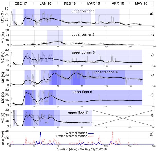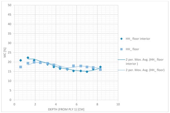 4.1. Moisture Content in the CLT Shear Wall and Floor