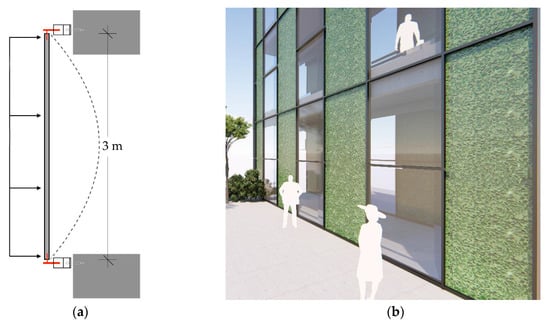 Possible applications. (a) Wind distributed loads along the 3 m height; (b) Ventilated façade.