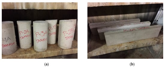 For a proper curing process, after 24 h of setting the wet paste, the specimens were removed from the molds and stored in the humid chamber. During the following 13 days, the specimens were dried there, under a relative humidity between 90% and 93% (see Figure 4).