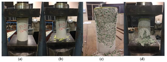 The procedure established by the ASTM (American Society for Testing and Materials o ASTM International) C39/C39M 2016 Standard test method for the compressive strength of cylindrical concrete specimens was used in this study [].