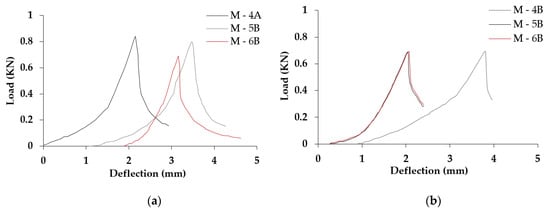Load-deflection curves from bending tests. (a) recommended proportion; (b) double proportion.