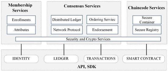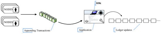 - Androulaki, E.; Barger, A.; Bortnikov, V.; Cachin, C.; Christidis, K.; De Caro, A.; Enyeart, D.; Ferris, C.; Ferris, C.; Manevich, Y.; et al. Hyperledger Fabric: A Distributed Operating System for Permissioned Blockchains. In Proceedings of the Thirteenth EuroSys Conference on—EuroSys ’18, Porto, Portugal, 23–26 April 2018; pp. 1–15. [Google Scholar] [CrossRef]