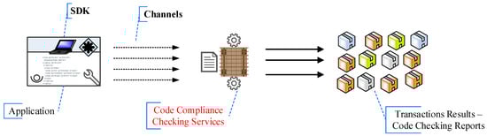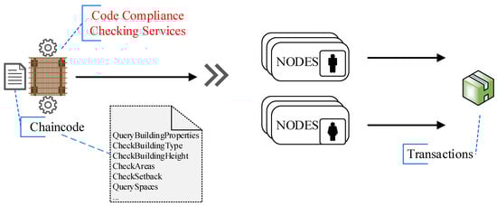 - The building codes or regulations upon which the BIM model data are to be examined must be processed into a computable language. A smart contract (chaincode) can be programmed to process the rules from a natural language using GAF [81]. This contract must be defined carefully to account for all clauses, terms, and variables used in the building code and regulations. After transformation of the rules, the smart contract generates a second appended smart contract that can now be used by the model checker. If the smart contract’s capabilities do not support adequate levels of semantic enrichment, the rules can be directly expressed in the scripting languages.