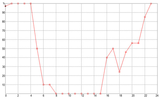 | Hour | 00:00 | 01:00 | 02:00 | 03:00 | 04:00 | 05:00 |