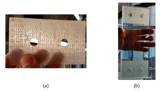 Examples of (a) GFRP strips (detail view) for (b) GFRP-reinforced bolted connections in structural glass members (reproduced from [84]).