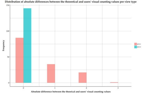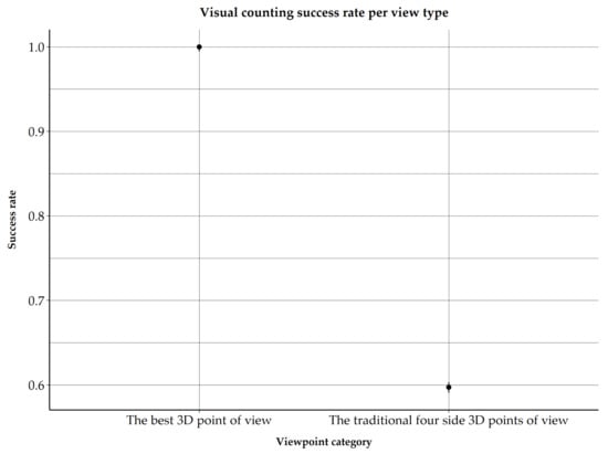 3.4. Is a 3D Viewpoint Based on the Maximization of 3D Geometric Objects’ View Area More Accurate for Visual Counting of a Set of Objects Within a Virtual 3D Building Model?