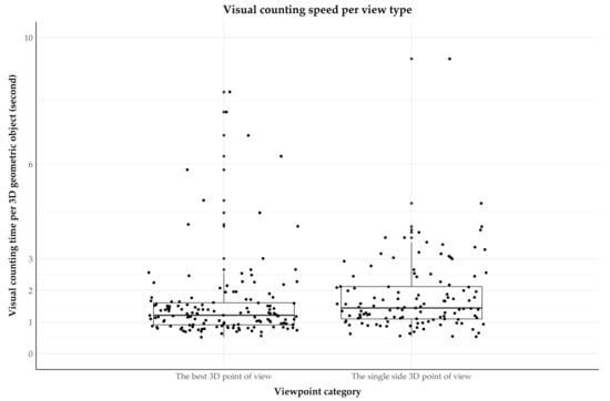 3.6. Does a 3D Viewpoint Based on the Maximization of 3D Geometric Objects’ View Area Make the Visual Counting of a Set of Objects Faster within a Virtual 3D Building Model?