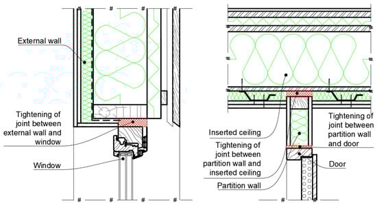 14] assessed the airtightness joints filled with PU foam, among other insulating and sealing materials (tapes, mineral wool). Several joints with PU foam filling half of the cavity, full cavity and full cavity with plaster coating were measured for airtightness. Air leakage rates in the range of 1.06 to 1.77 m