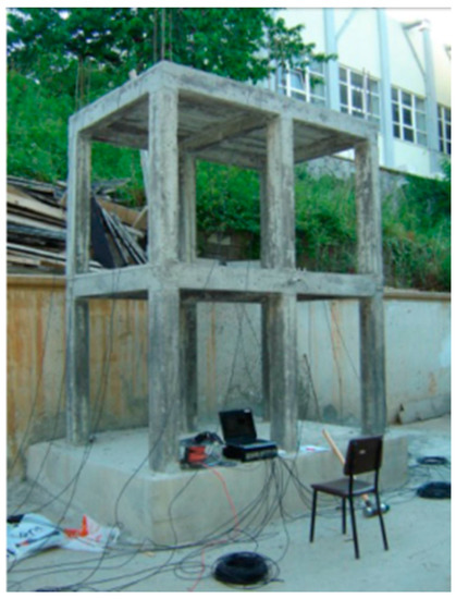 - Türker, T.; Bayraktar, A. Vibration based modal testing of a scaled reinforced concrete building for construction stages. Bull. Earthq. Eng. 2016, 5, 1–18. [Google Scholar] [CrossRef]