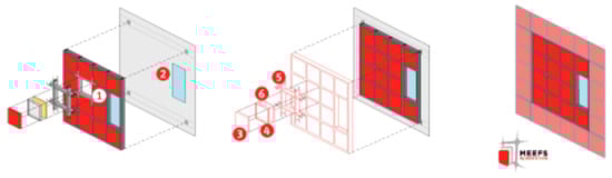 Figure 1 shows the core idea of the Meefs system, i.e., it is an energy efficient non-intrusive façade concept based on modular technology components that will allow integrating both active and passive technologies in the façade without tearing down the exterior parts of the existing structure. Every module will represent different energy efficient innovative solutions and will be packaged into easy-to-install panels [].