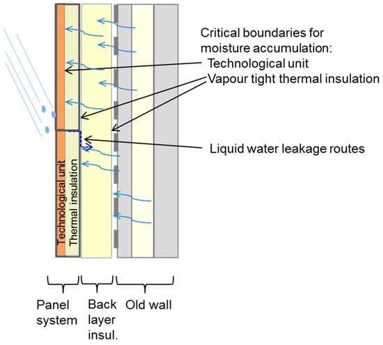 The panel system with thermal insulation layers and the exterior layer (the technological unit) should be open for diffusion so that the additional moisture can dry out.