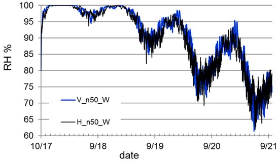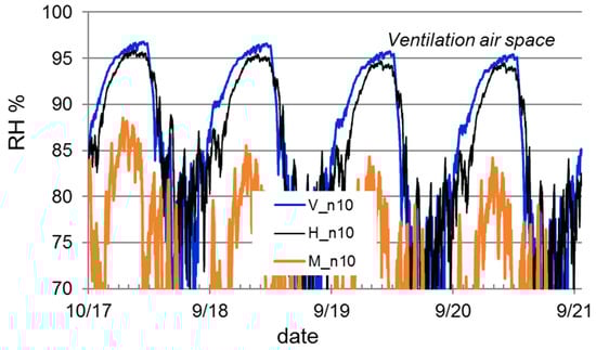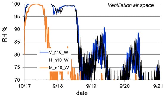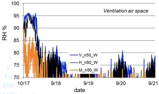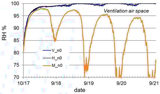 - When the ventilation takes place through local ventilation channels (edge area of the frames) or grooves in thermal insulation close to the exterior surface of the technical module, the drying efficiency remains relatively low. In this case, the existing structure should be dried out before the installation of the Meefs system to a moisture content corresponding to 80% RH equilibrium.