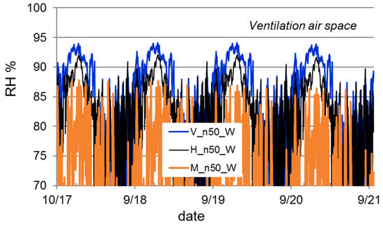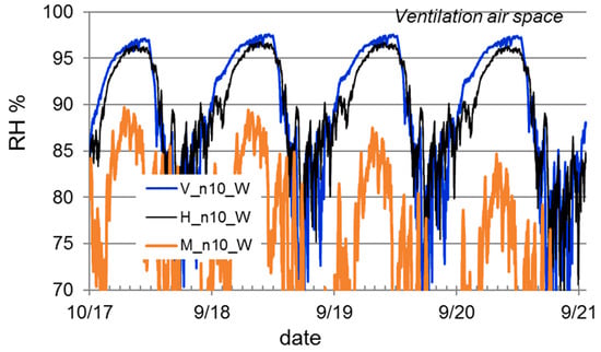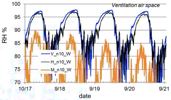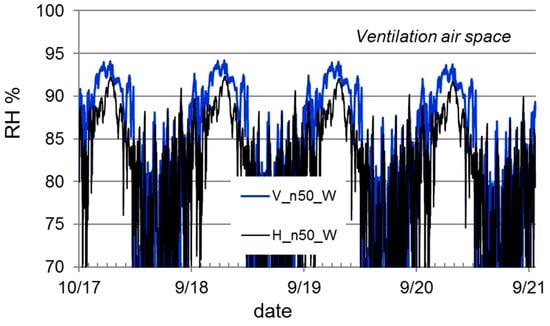 The wall ventilation air flow rates were relatively low, but when the ventilation takes place inside the wall between thermal insulation layers (ventilation scheme 2), the cooling effect of the ventilation dilutes part of the effect of the thermal resistance of the system.