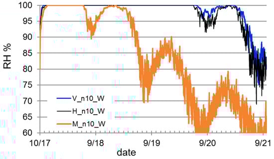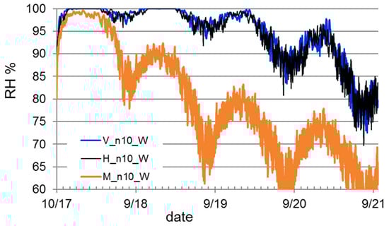 - Coelho, G.B.A.; Henriques, F.M.A. Influence of driving rain on the hygrothermal behavior of solid brick walls. J. Build. Eng. 2016, 7, 121–132. [Google Scholar] [CrossRef]
