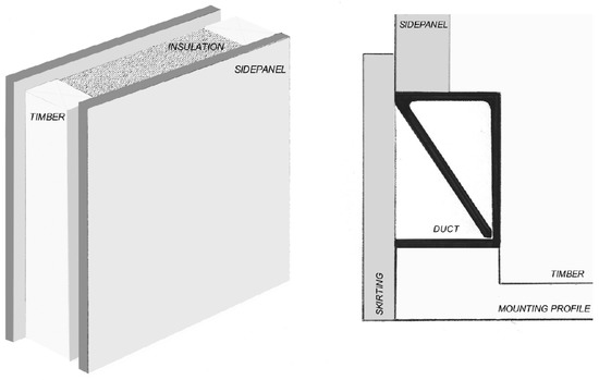 Basic partition wall configuration (left) and detail of the cable duct behind skirting board (right).